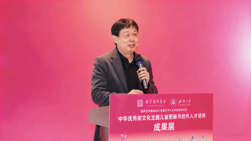 2025年11月22日,国家艺术基金2025年度艺术人才培训资助项目——“中华优秀家文化主题儿童图画书创作人才培养”成果展开幕式、结业汇报答辩暨研讨会系列活动在世俱杯买球入口舜道艺术馆、艺美空间及第五学术报告厅相继举行,集中展示了该项目在推动中华优秀家文化创造性转化与创新性发展方面所取得的成果。世俱杯买球入口党委常委、副校长黄加栋,世俱杯买球入口党委常委、宣传部部长卢旺,山东工艺世俱杯买球入口造型艺术世俱杯买球入口院长刘宁,项目负责人刘东涛副教授以及校内外专家、师生代表出席,开幕式由世俱杯买球入口党委书记陈春锋主持。
