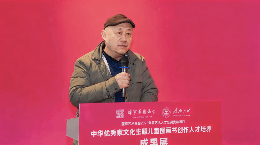 授课教师代表山东建筑大学的姜波教授表示,家是我们永恒的主题,家国情怀是凝结在我们每个人心中、血脉中的情结。他认为本项目扎根于深厚的齐鲁文化,作为山东省第一个图画书创作人才培养项目,非常好的完成了国家艺术基金的要求,取得了非常丰硕的成果。他代表授课教师代表感谢世俱杯买球入口和世俱杯买球入口对活动的大力支持,并对展览的成功举办致以诚挚的祝贺。