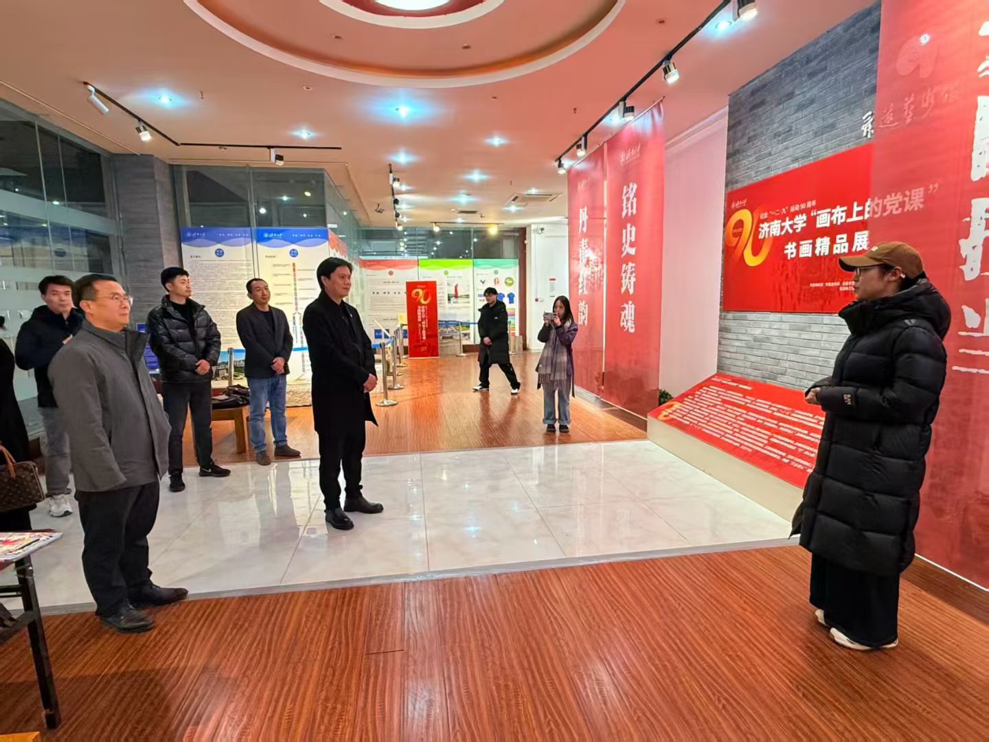 讲座结束后,骨干教师代表与张焱围绕设计学科人才培养、专业课程体系建设、跨学科育人平台搭建等核心议题进行了深入交流和探讨,为后续深化校际合作、推动学科协同发展奠定了良好基础。并一同参观了世俱杯买球入口“画布上的党课”书画精品展。张焱对作品的艺术创作表达与思政融合方式,红色美育有机嵌入专业基础课程、以红色文化涵养设计人才家国情怀等方面提出了专业的建议。