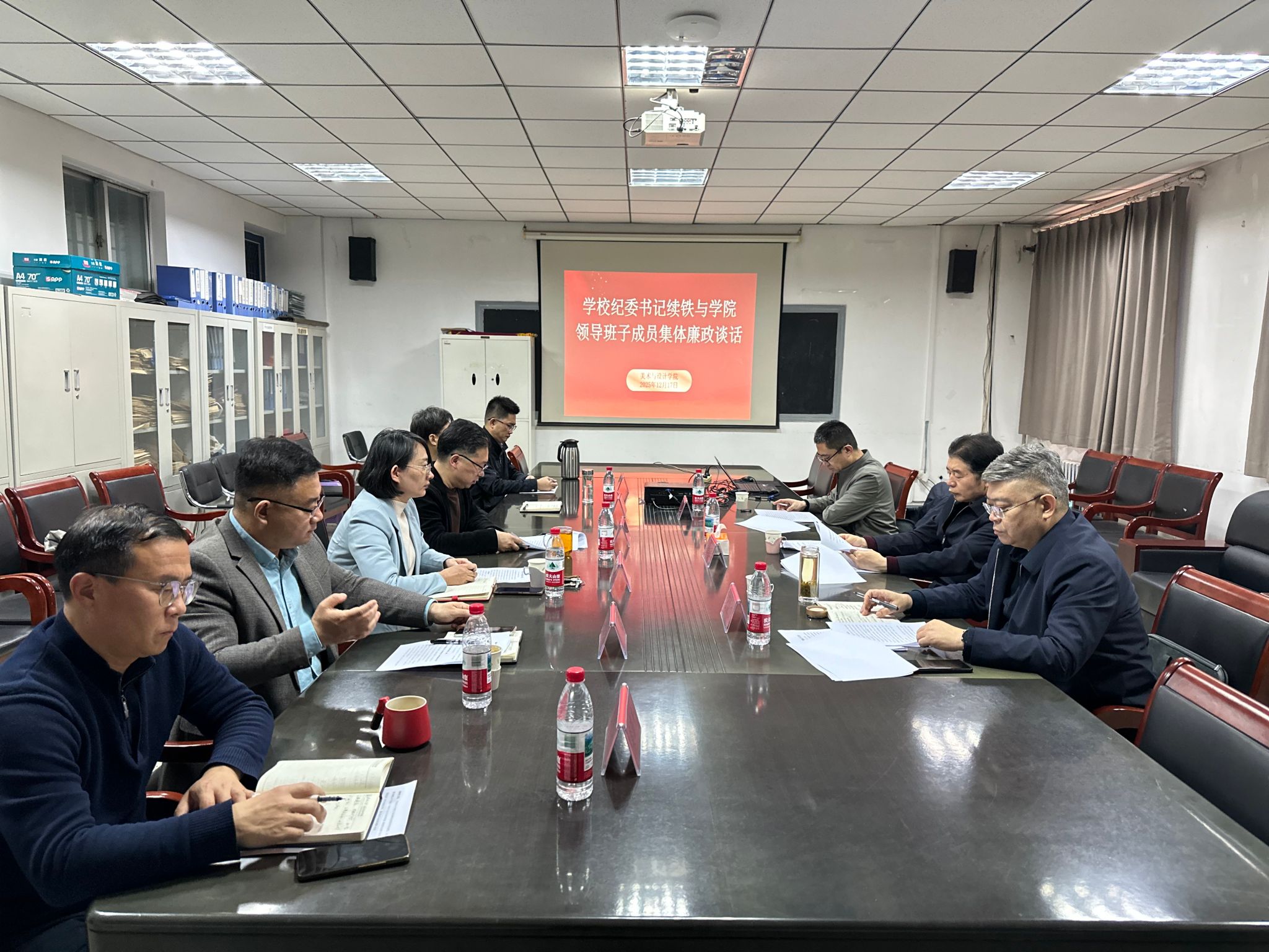 廉政谈话环节,续铁重点围绕三个方面对班子成员提出明确要求:一是提高政治站位,扛牢全面从严治党的政治责任。引导广大师生增强“四个意识”、坚定“四个自信”、做到“两个维护”;二是强化理论武装,巩固拓展深入贯彻中央八项规定精神学习教育成果。将廉洁要求融入艺术创作和教学实践,在美术创作、设计项目、展览评审等工作中严守纪律规矩,做到德艺双馨、为人师表;三是强化作风建设,持续营造风清气正、干事创业的良好氛围。以优良作风带动教风学风,为培养德才兼备的艺术人才提供坚强保障。