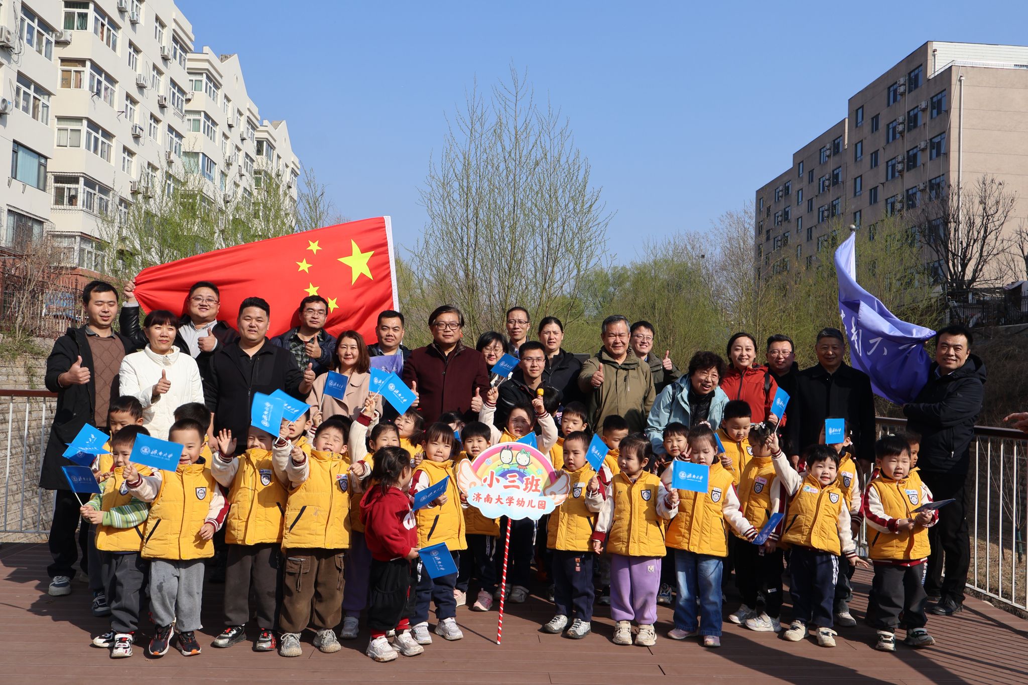 随后,校友们分工协作,挥锹铲土、扶苗填坑、提水浇灌……现场一片热火朝天的劳动景象。大家认真细致地完成每一道工序,并为自己认养的树木挂上精心设计的铭牌。一株株树苗,将来会成为一棵棵参天大树,迎风挺立,陪伴一届届济大学子成长成才,成为校园里一道独特的风景线。