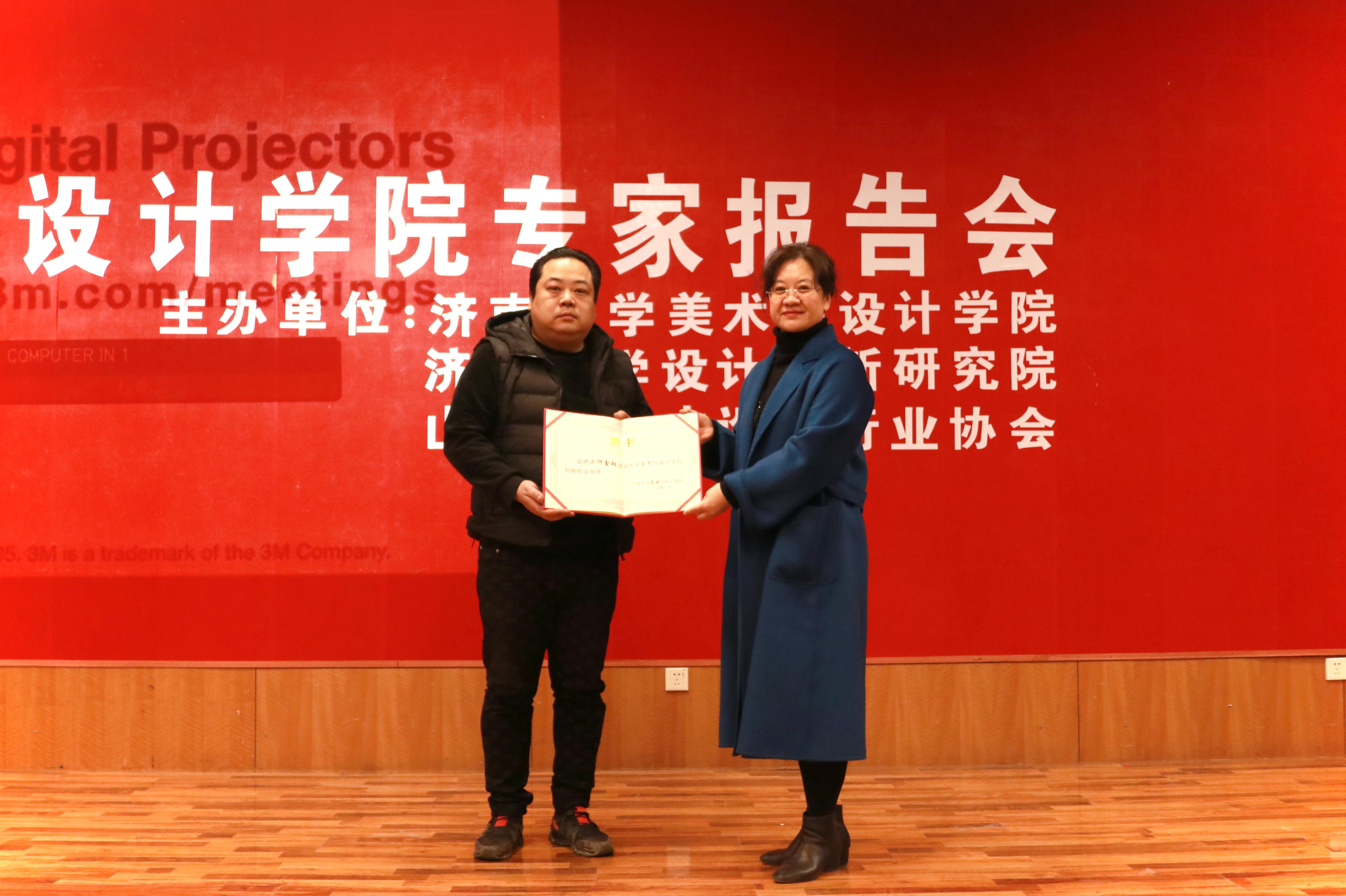 报告会伊始,李光红副校长分别为新加坡室内设计师协会理事长王胜杰和山东省室内设计行业协会秘书长何金朔颁发客座教授、双创导师聘书。新加坡室内设计师协会理事长王胜杰为大家带来一场主题为“室内建筑学方法论”的讲座。王胜杰理事长以设计师要有探险家和侦探的思考方法为切入点,讲述了形体的创造、形体的接触方式、注射建筑方法论等概念。并结合自己多年的设计作品,从平面图、效果图、成品图等多层维度,对零售空间、酒店空间、餐饮空间、公共机构空间、办公空间、住宅空间这六种空间设计展开叙述与解读。昆明滇峰概念店、平江狮口崖酒店、中南大学咖啡厅、新加坡山边小别墅等等,这一个个精彩绝伦又充满匠心的作品,将在场师生都带入了设计唯美又新奇的世界。感性设计,理性思考,因地制宜,就地取材,王胜杰用自己的作品与行动,为我们展现了一名设计师的责任与匠心。最后,王胜杰说:“创意是一种探险,每一步的前进都是新的体验。”让我们看到了一位优秀设计师的热爱和坚持。