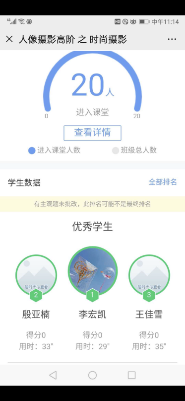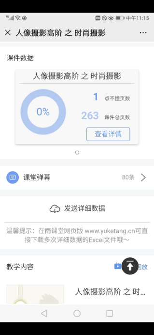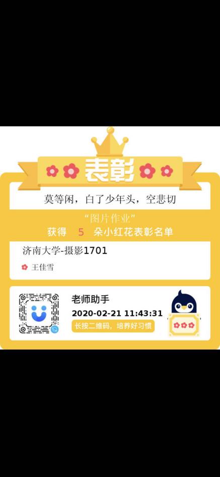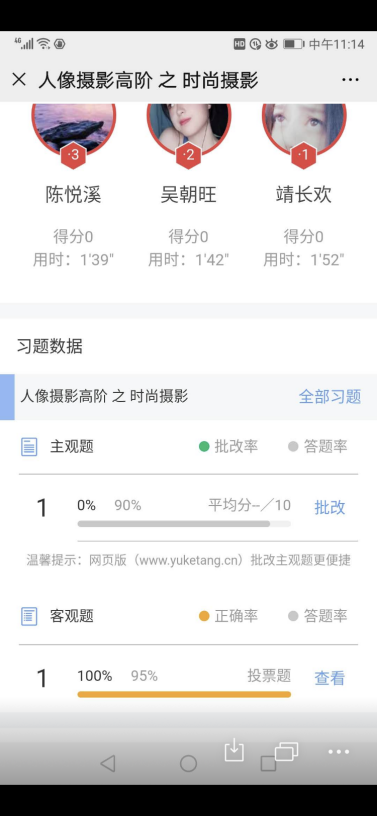 摄影系徐园园老师,通过雨课堂、QQ直播相结合,不仅课前准备充分,而且在课堂练习、现场评分、课后作品投票等环节做了非常好的设计,让网络教学的效果充分发挥出来,极大地调动了学生的积极性。
