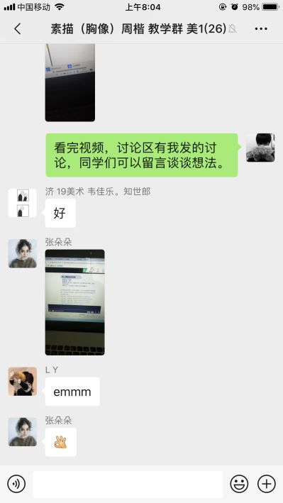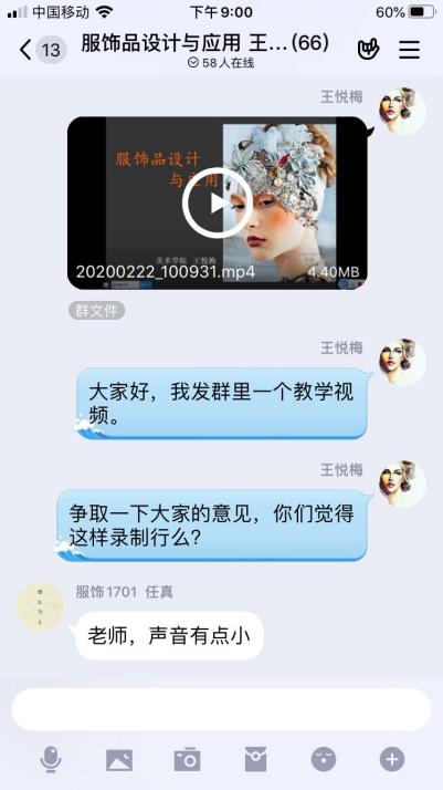 图为环境艺术设计专业杨周与吕晨红老师与17级学生进行课堂“云”交流