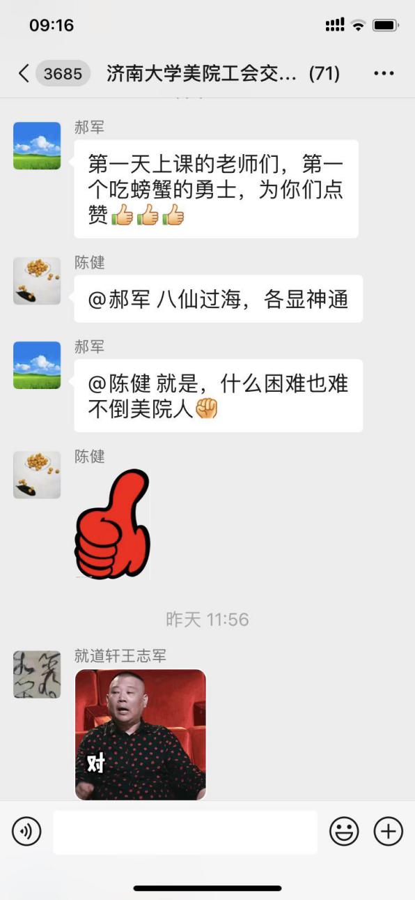 美术系王晓龙老师的《创作与构图》第一课,通过腾讯会议进行直播授课。屏幕共享代替多媒体,音视频互动拉近师生距离,还原丰富多彩的课堂教学。学生们上课热情高涨,教学效果不减。