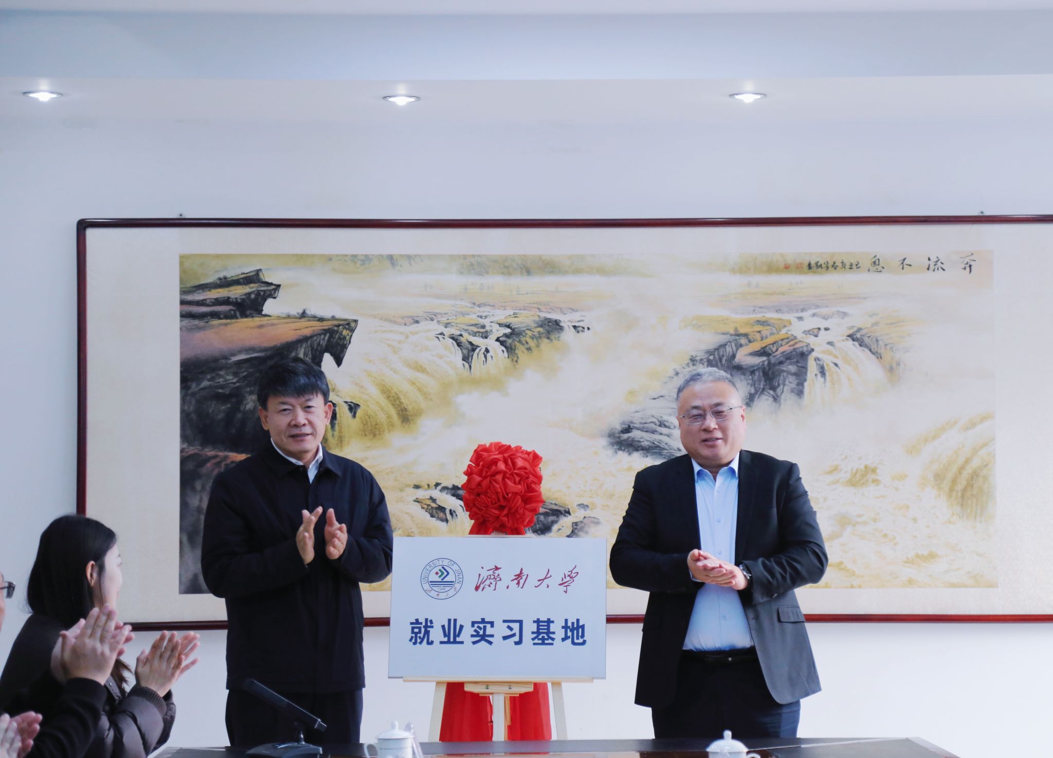 仪式现场,黄加栋与郑振亮共同为世俱杯买球入口就业实习基地揭牌。合作发展处处长刘振与张滨共同签署世俱杯买球入口与滨州经济技术开发区文化创意产业合作协议书。