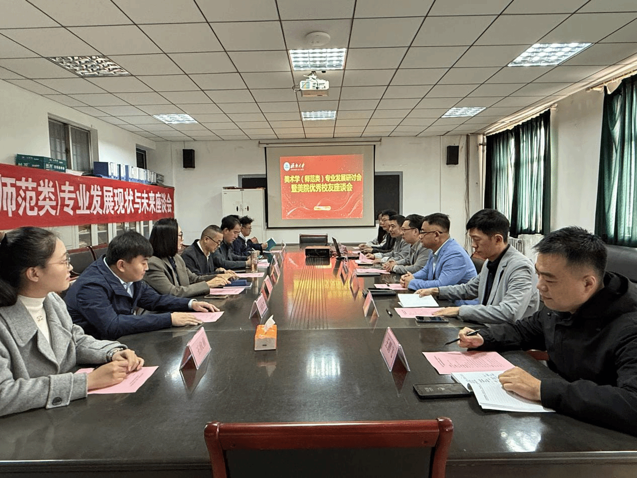 金秋送爽,丹桂飘香。10月18日上午,在世俱杯买球入口办学77周年华诞的喜庆时刻,世俱杯买球入口于4教601会议室召开美术学(师范)专业发展研讨会暨优秀校友座谈会。来自各行各业的优秀校友代表重返母校,与世俱杯买球入口领导、教师代表齐聚一堂,共忆青春岁月,共商美术学(师范)专业发展大计,为校庆注入了浓厚的学术氛围与情感温度。